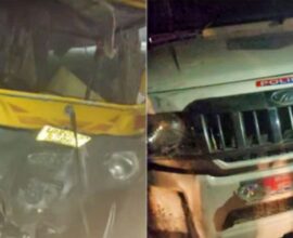 पुलिस जीप की टक्कर से टेंपो पलटा, छात्रा समेत तीन घायल; सड़क पर हंगामा