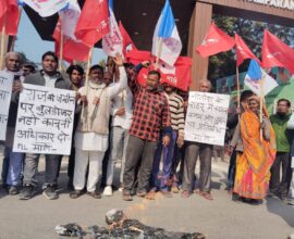 भाकपा माले ने किया मुख्यमंत्री और राजस्व मंत्री का पुतला दहन
