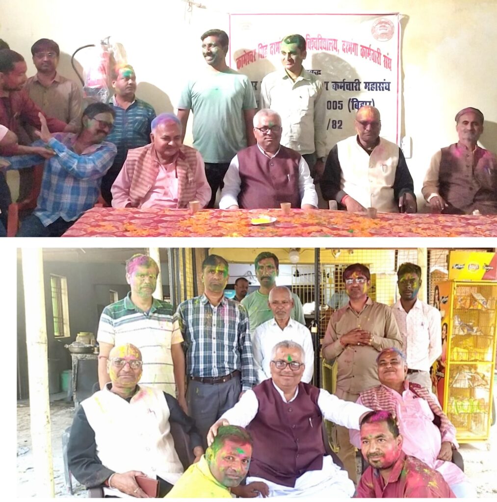 दरभंगा। बिहार राज्य विश्वविद्यालय कर्मचारी महासंघ, के कार्यालय पर कामेश्वर सिंह दरभंगा संस्कृत विश्वविद्यालय के कर्मियों,शिक्षकों, पदाधिकारीयों ने शनिवार को होली से पूर्व होली मिलन समारोह का आयोजन किया गया। जिसमें मुख्य अतिथि कुलपति, प्रो. लक्ष्मी निवास पाण्डेय, प्रो. दिलीप झा प्रभारी कुलपति, भू संपदा पदाधिकारी, उमेश झा, कर्मचारी संघ अध्यक्ष, सचिव रघुनंदन कुमार , प्रवक्ता, अभिमन्यु कुमार, डॉ अनील कुमार झा, सेवानिवृत्त प्रशाखा पदाधिकारी कामेश्वर सिंह दरभंगा संस्कृत विश्वविद्यालय प्रशाखा प्रभारी, कुंदन कुमार भारद्वाज सहित कर्मी शिक्षक एवं छात्र ने होली मिलन को यादगार बना दिया। विश्वविद्यालय के कर्मचारी सतीश शर्मा भी सेवानिवृत हुए जिन्हें विदाई समारोह आयोजित कर विदाई दी गई। उन्होंने कहा अपने कार्यकाल में हमें सभी का सहयोग मिलता रहा है। इस अवसर पर प्रभारी कुलपति, प्रो. दिलीप कुमार झा ने कहा होली मिलन समारोह में हम सभी एक दूसरे को रंग गुलाल लगाकर होली मिलन मनाए, होली से पूर्व सभी कर्मियों शिक्षकों को वेतन का भुगतान विश्वविद्यालय के द्वारा कर दिया गया है ताकि वह भी अच्छी तरह से होली मना सकेगे। विश्वविद्यालय के भू संपदा पदाधिकारी उमेश झा ने कहा प्रेम और भाईचारे का पर्व होली हम सभी मिलजुलकर मनाए, सभी कर्मीयों और शिक्षको ने मिलकर होली मिलन मनाया।