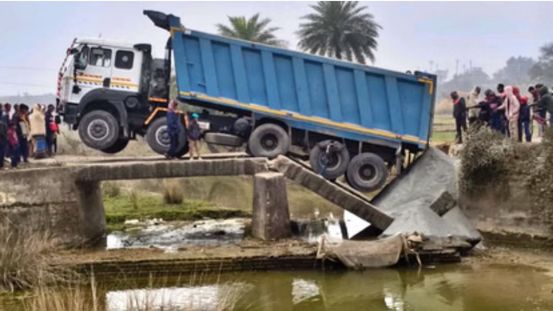 शुक्रवार को बौर बहादुरपुर गांव के समीप बने पुराने पुल से एक भारी हाईवा गुजर रहा था। इसी दौरान पुल अचानक धंस गया और उसका एक हिस्सा टूटकर हाईवा में फंस गया। गनीमत रही कि इस हादसे में किसी के हताहत होने की सूचना नहीं है, लेकिन हालात बेहद गंभीर हो गए।