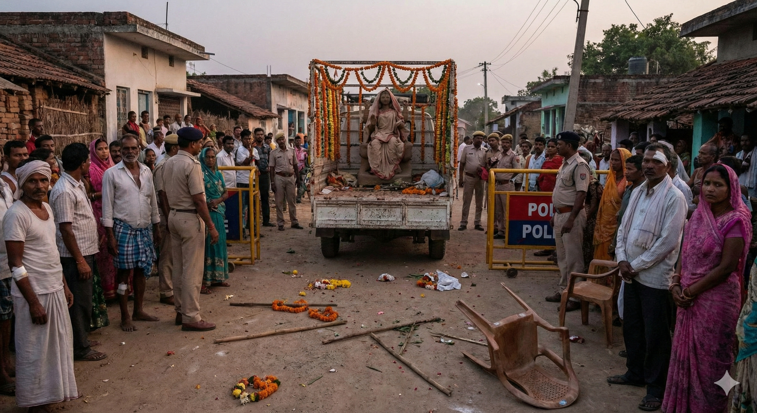 सरस्वती विसर्जन में विवाद ने लिया हिंसक रूप, गांव में भारी पुलिस तैनाती