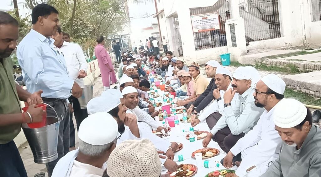 दरभंगा से नासिर हुसैन की रिपोर्ट:- स्थानीय वार्ड 21 के पार्षद मधुबाला सिन्हा और अब पार्षद नवीन कुमार सिन्हा दरभंगा नगर निगम परिसर में दावत ए इफ्तार दी गई। जिसमे हजारों रोजेदारों ने पहुंचकर अपना रोजा इफ्तार किया। इस मौके पर शहर के हर जगह से लोग इस दावत ए इफ्तार में भाग लेकर इफ्तार किया। यह हर साल यहाँ वार्ड पार्षद रही मधुवाला सिन्हा और अब वर्तमान में वार्ड 21 के पार्षद व समाजसेवी, नवीन कुमार सिन्हा उसी तरह से हर साल रमजान के मौके पर दावत ए इफ्तार का शानदार आयोजन करते आ रहे है। हिन्दू मुश्किल की यह मिशाल यह रोजे के इफ्तार से समाज में जाता है।