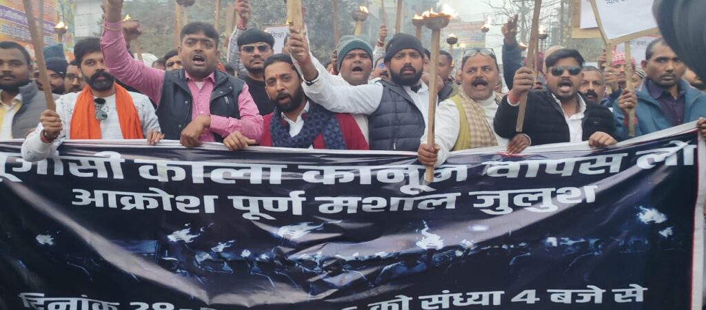 यूजीसी नियम लागू करने के खिलाफ दरभंगा के सवर्ण जाति के लोग काला कानून वापस लेने के लिए मशाल जुलूस निकाल कर विरोध प्रदर्शन किया